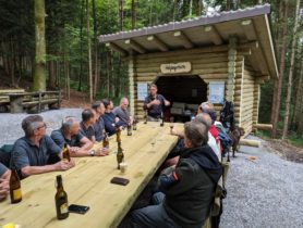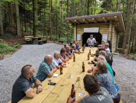 Am Mittwoch, 5.Juli 2023, konnte die Aufrichte der neuen Hofjüngerhütte mit Vertretern der Hofjüngerkorporation, des Holzimprägnierwerks Waldkirch, des Waldkircher Gewerbes sowie weiteren Sponsoren erfolgen. Im Januar 2022 ist die Hofjüngerhütte im Mollenwald bekanntlich einem Brand zum Opfer gefallen.