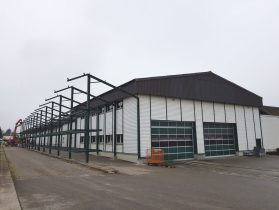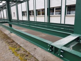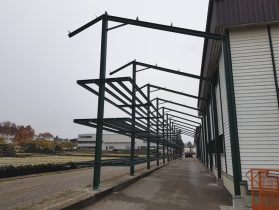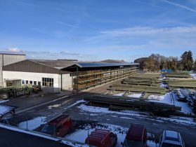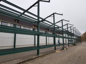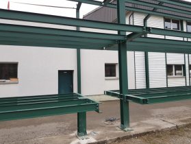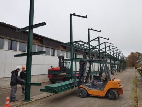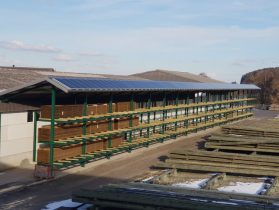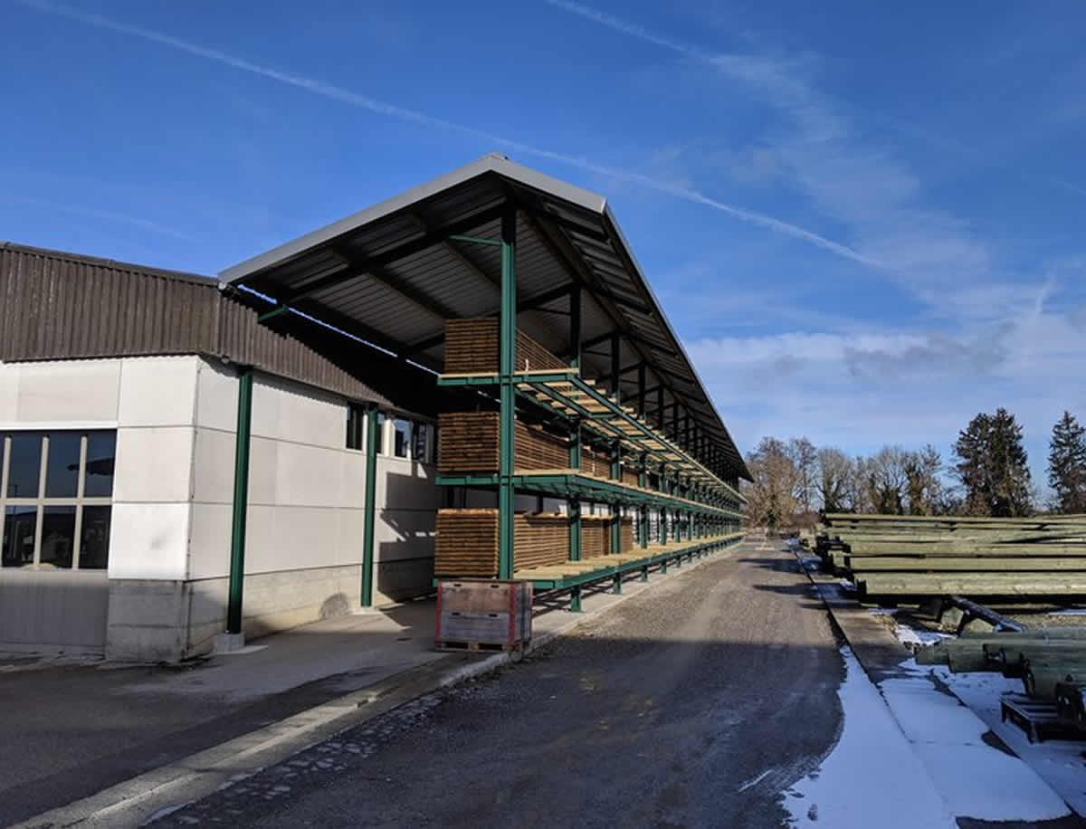 Wir haben gerade ein neues Gestell von 85m Länge errichtet, das zum Grossteil für die Lagerung und Trocknung von frisch imprägniertem Kundenholz und eigenem Holz gebraucht wird.